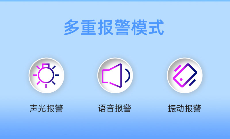 报警方式:声光报警、震动报警、语音报警。